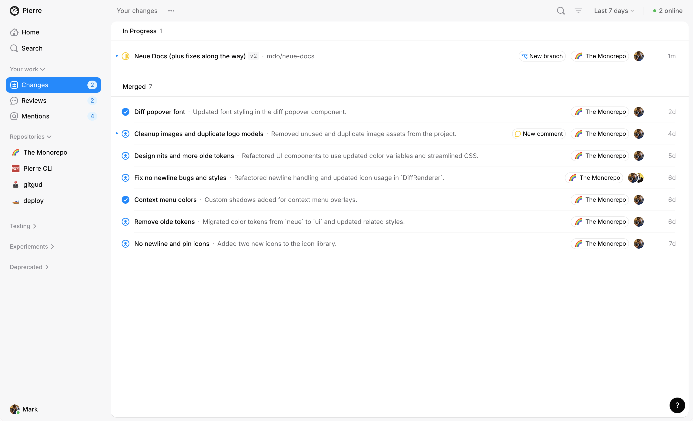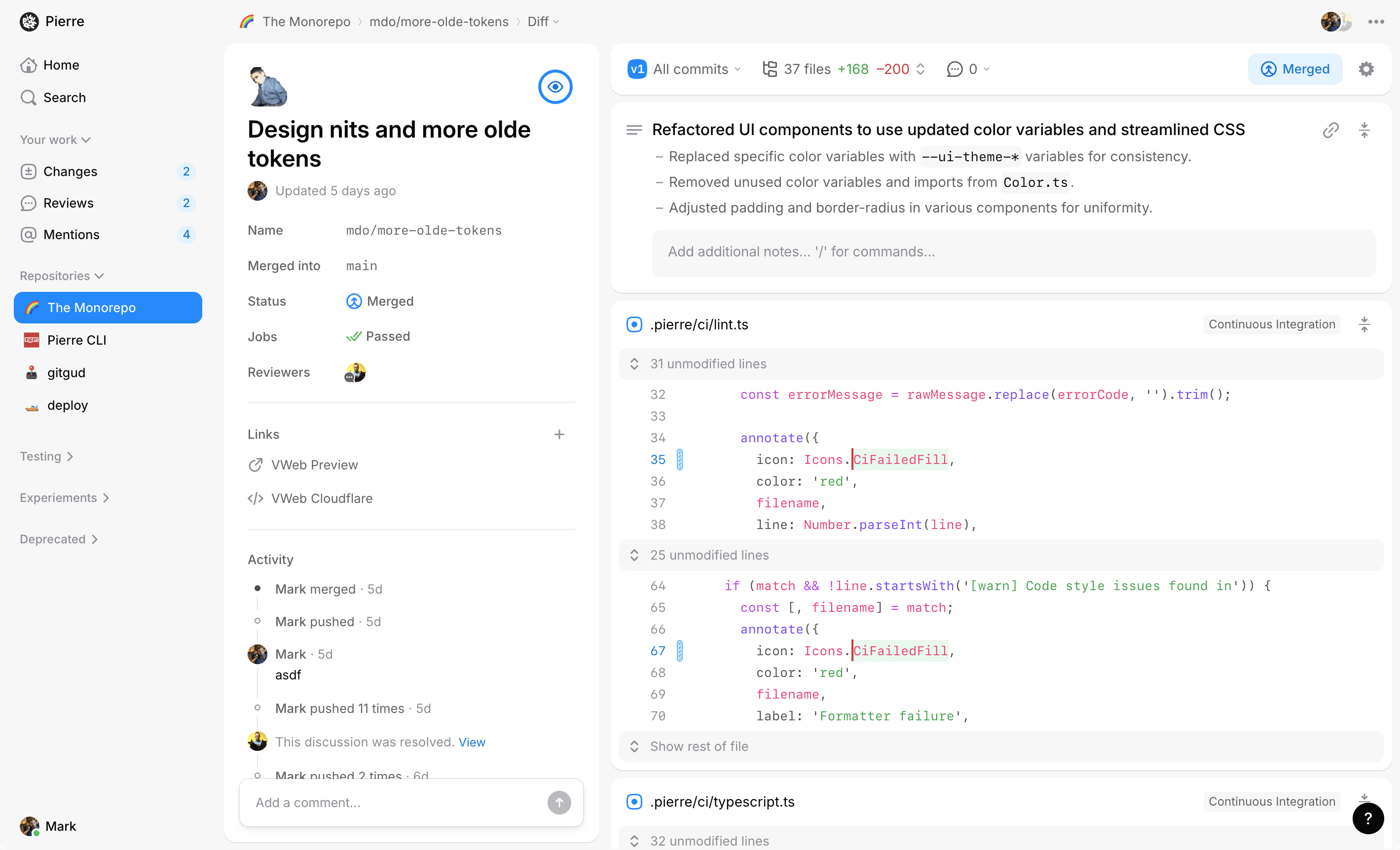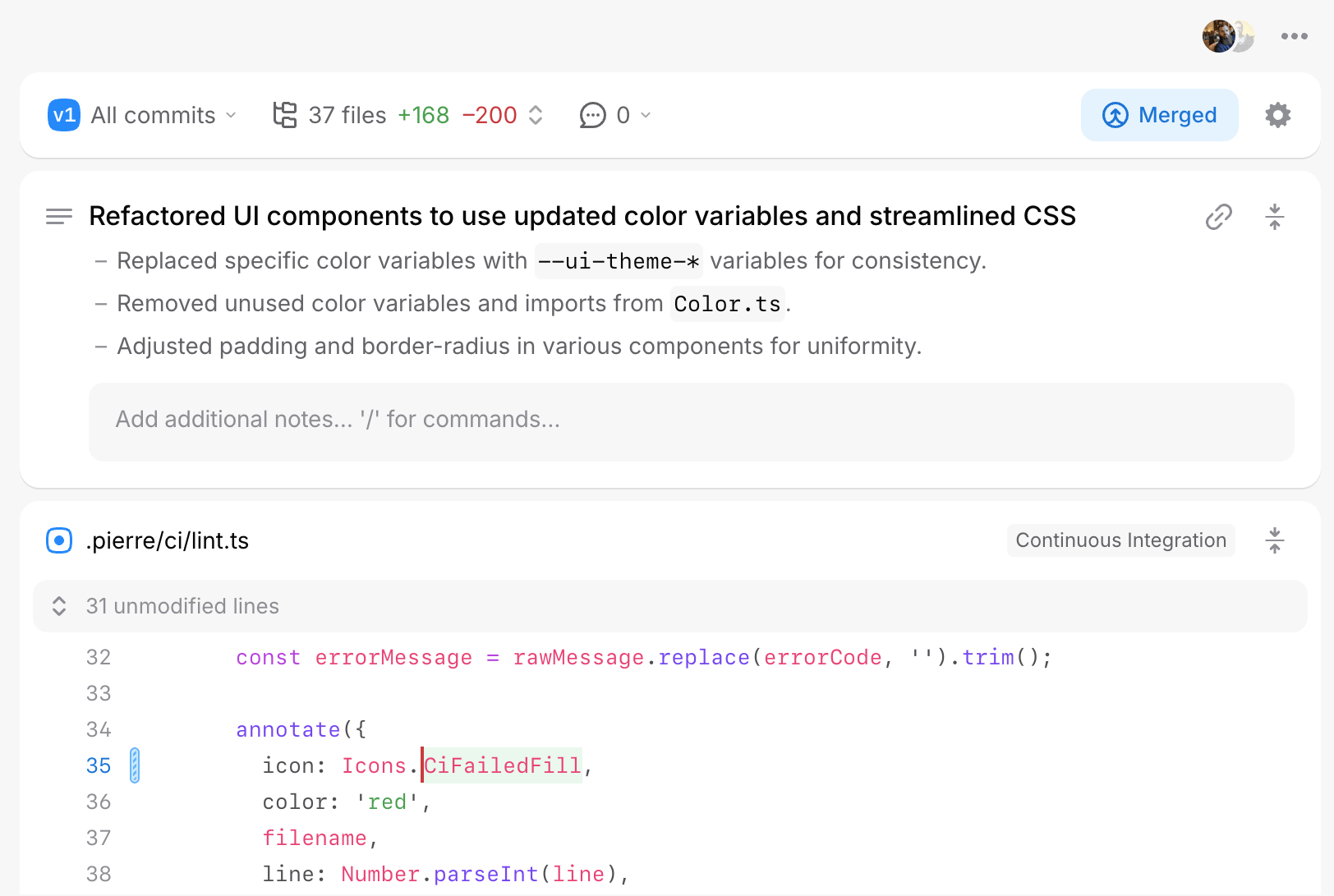 Branches on Pierre are supercharged collaborative surfaces for folks to present their changes, discuss ideas, review code, and so much more.