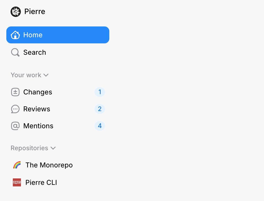 When a branch has reviewers, Pierre notifies them of the update by updating their sidebar to include an unread item.