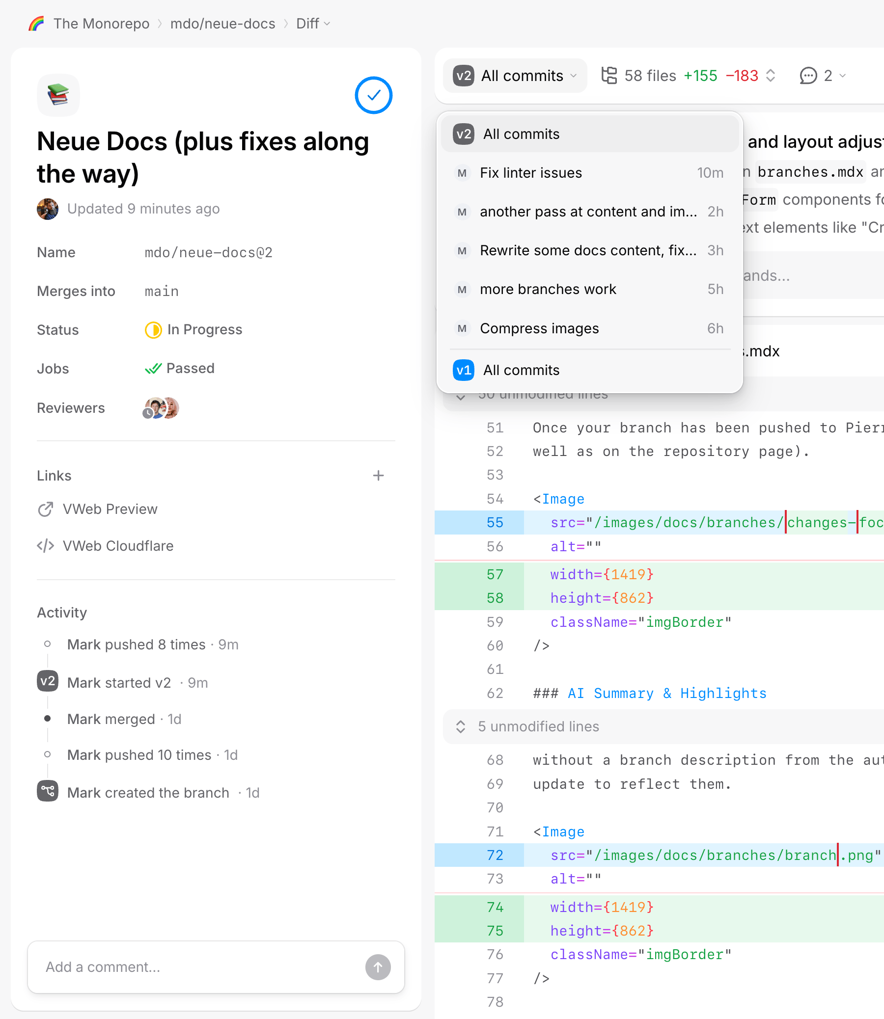 With continuous branching on Pierre, we’re setting out to normalize a number of behaviors that were previously impossible on traditional Git platforms. Behaviors that we think will lead to more collaboration and faster iteration speed.