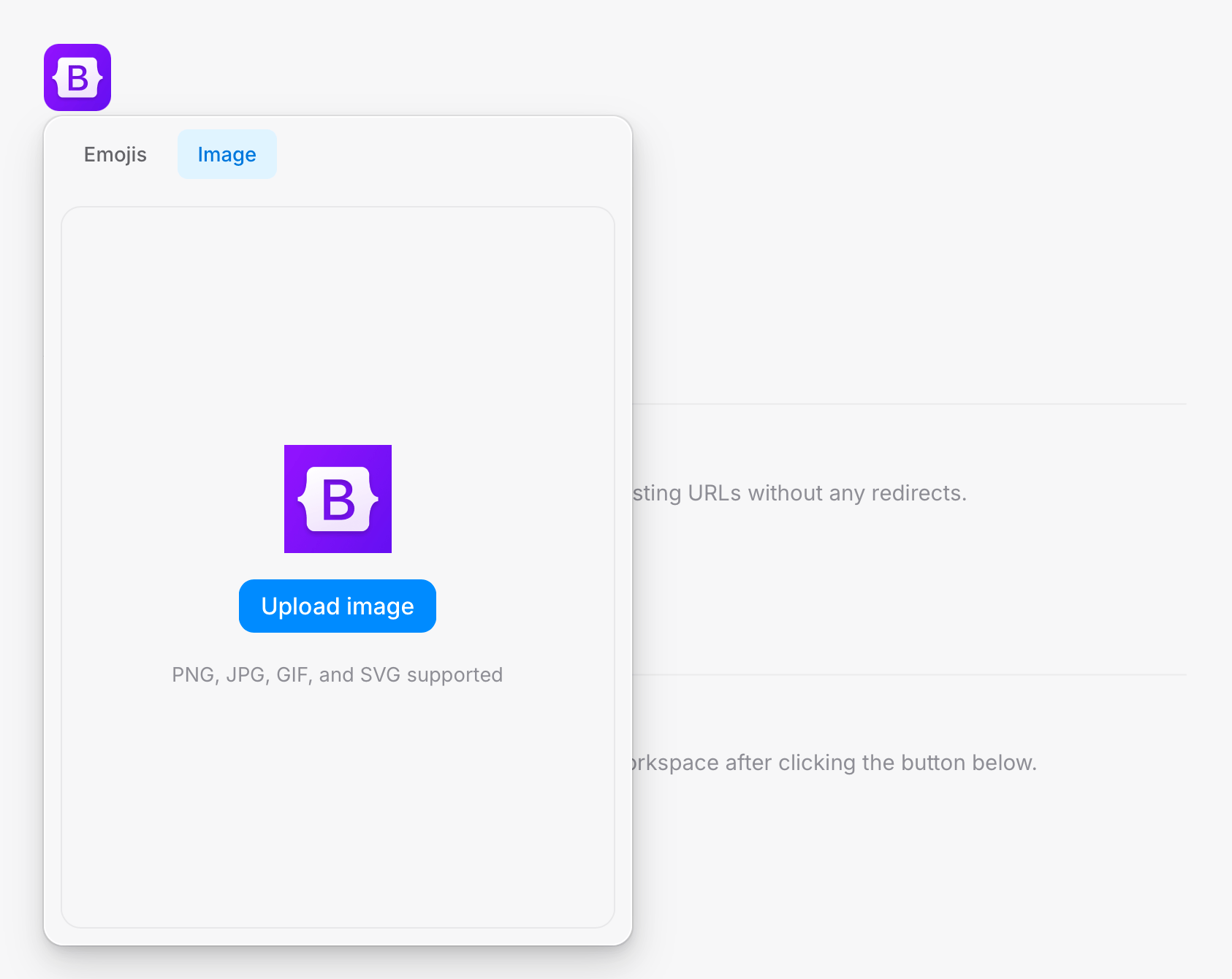 Above the workspace name and description, you’ll find our "emojitar" picker. Use this to pick an emoji to represent your workspace, or upload your own image as an avatar.